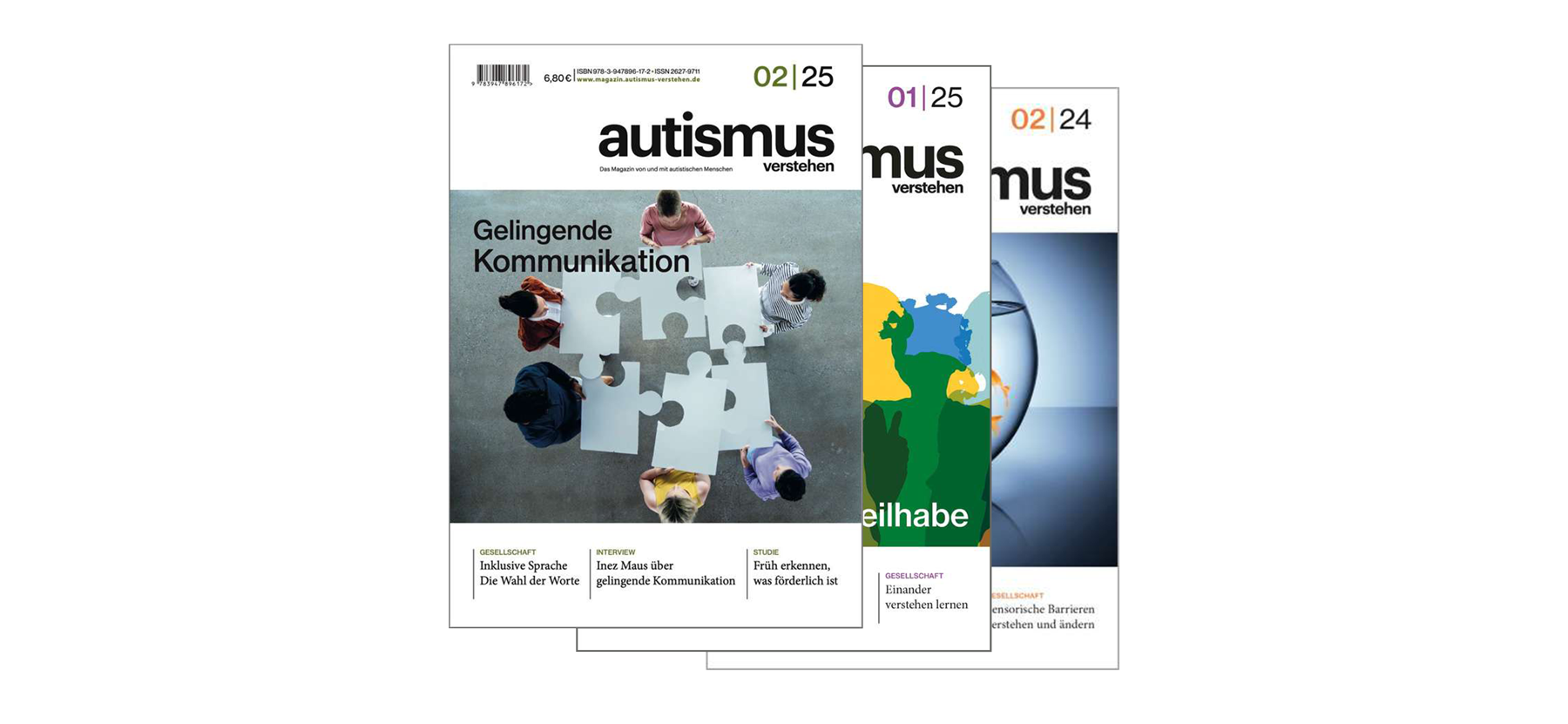 Erschienen am 15.09.25 Thema: Gelingende KommunikationGESELLSCHAFTInklusive SpracheDie Wahl der Worte (Redaktion)FORTSCHRITTKitas der ZukunftAutismussensibles BauenKINDERGARTENFrüh erkennen, was förderlich istAutismus-Studie für Kita-Kids (Stephanie Fuhrmann,White Unicorn)SCHULEIst Inklusion doch nicht für alle da?Erfahrungsbericht einer Mutter (Elvira Schuster)AUSBILDUNGSpezialinteresse mit Praktika erweitertBeharrlichkeit und offene Kommunikation (Raphaela Weber)INTERVIEWGelingende Kommunikation braucht VerständnisInez Maus über ihre Erfahrungen (Marie-Louise-Abele)RECHTSchutz und FürsorgeDas Behindertentestament (Armin Abele)SICHTWEISENEinander verstehen lernenAlltag aus zwei Blickwinkeln Natahlie Lehnert (autistisch) und Nicole Ling (nicht autistisch)BERUFEhrenamt als sicherer OrtSelbstwirksamkeit statt Isolation (Angelika Ihrig)KOLUMNEGedanken eines Autisten (Frank Eberhardt)GESELLSCHAFTStille Stunde – Einige Beispiele (Angelika Ihrig)GESELLSCHAFTRuhiges Badeerlebnis – Mehr TeilhabeNeurodivergente Schwimmlehrerin bietet Stille Stunde anEditorial:Wir sind uns einig: Diese Ausgabe war sehr herausfordernd. Warum?Gelingende Kommunikation – zwei Wörter, die so leicht daher- kommen. Doch wir merkten schnell, dass dies nicht einfach werden würde.An diesem Magazin arbeiten autistische und nicht-autistische Menschen mit unterschiedlichsten Hintergründen, Kommunikationsstilen und Erfahrungen im Autismus-Spektrum zusammen. Es ist ein Aufeinandertreffen zahlreicher Perspektiven auf die Themen. Nicht nur beim Text, auch bei der Auswahl der Bilder, es ist stets eine Suche nach Kompromissen. Manche von uns schreiben lieber, andere brauchen den direkten Kontakt, fühlen sich mit klarer Struktur wohler. Einige brauchen Zeit zum Nachdenken, andere sprechen lieber spontan. Manchmal hat es auch nichts mit Worten zu tun. Deshalb ist Kommunikation für uns alle unterschiedlich – und manchmal müssen wir erst gemeinsam herausfinden, wie wir am besten miteinander kommunizieren können.Diese Ausgabe beinhaltet Texte, die unterschiedlichste Erfahrungen widerspiegeln, Interviews mit Menschen, die ihre eigenen Strategien entwickelt haben, Reportagen über persönliche Perspektiven, Tipps für schwierige Momente und Denkanstöße für mehr Verständnis im Alltag.Kommunikation gelingt nicht von selbst. Sie braucht Geduld, Verständnis – und den Mut, nachzufragen, sich auf andere einzulassen, Unsicherheiten auszuhalten und zuzuhören.Wirklich zuzuhören.Wir wünschen Ihnen viel Freude beim Lesen.